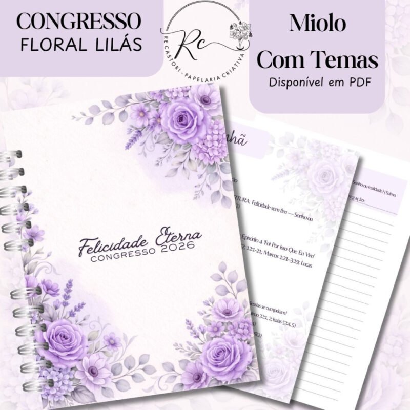 Caderno para o Congresso 2026 – Floral Lilás Com Tema (Re Castori)