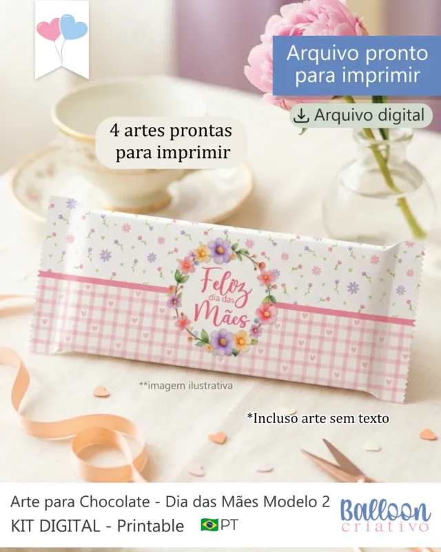 Kit Printable – Arte para Chocolates – Dia das Mães Modelo 2 (Balloon)
