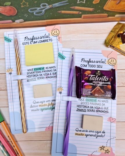 Mini kit post it, chocolate, lápis para professores – Volta às Aulas 2026