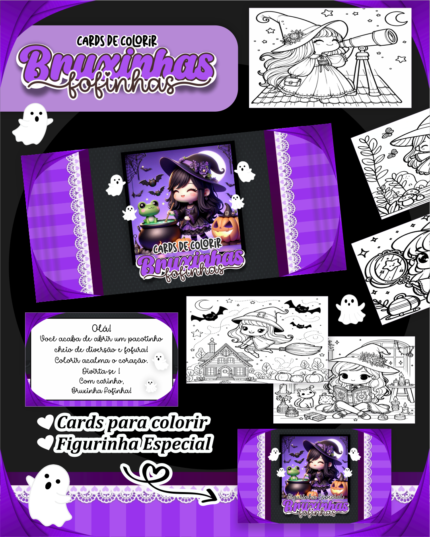 Card de Colorir – Bruxinhas Fofinhas