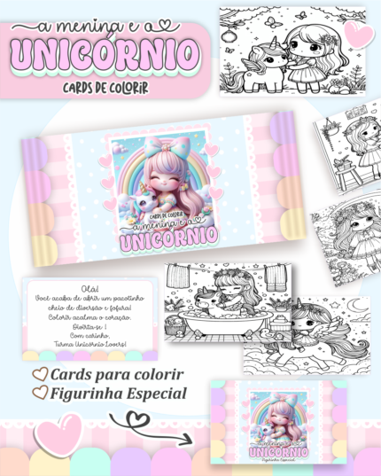 Card de Colorir – A Menina e o Unicórnio