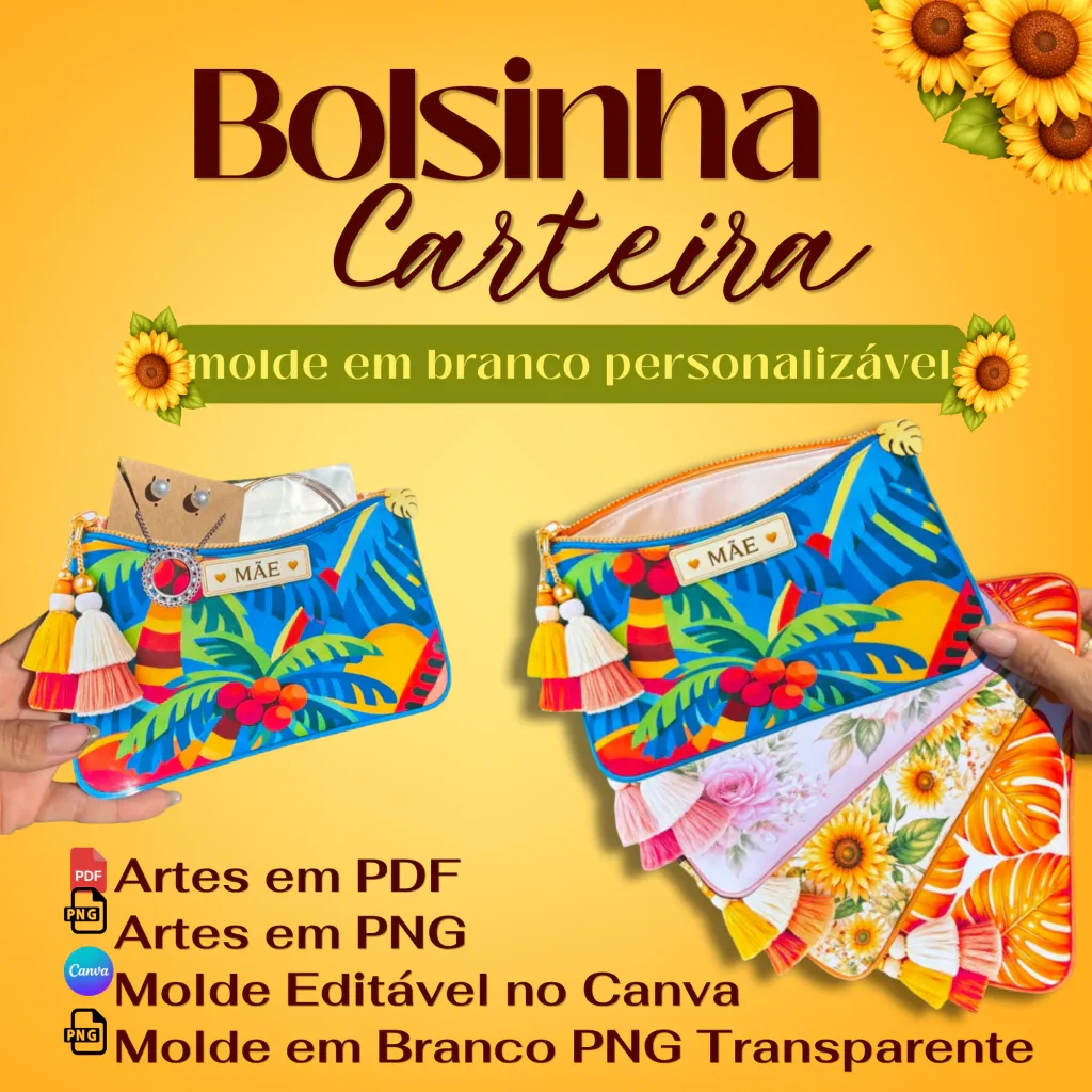 Molde pronto para impressão nos em 4 estampas: Girassol, Tropical Azul, Rosa, Folhagens Laranja