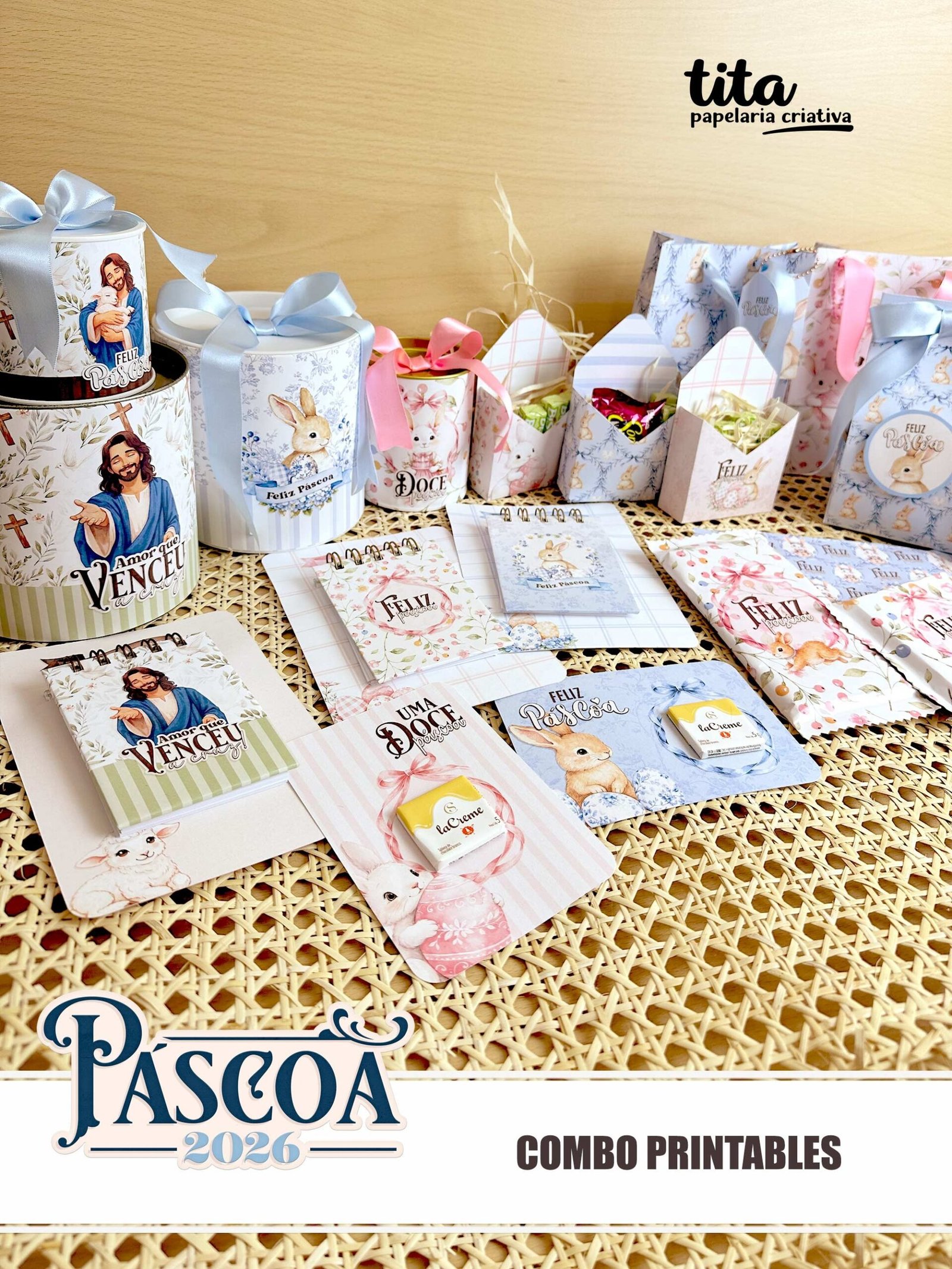 Páscoa 2026 – Combo Printables Coelhos + Jesus (Tita)