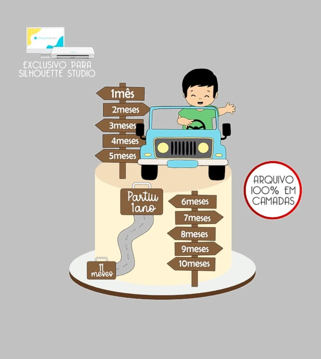 Partiu 1 Ano Menino Dirigindo – Topo de Bolo