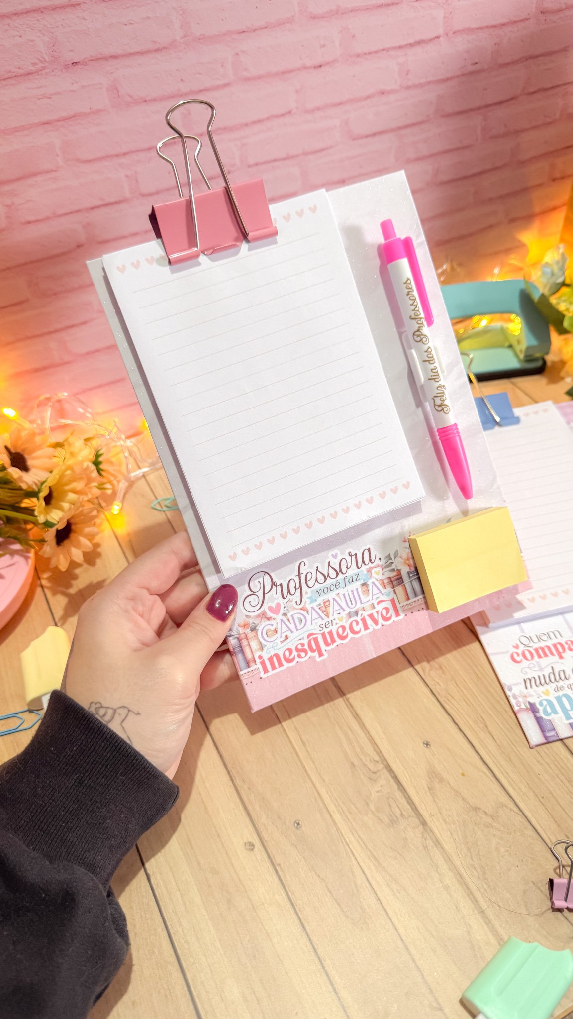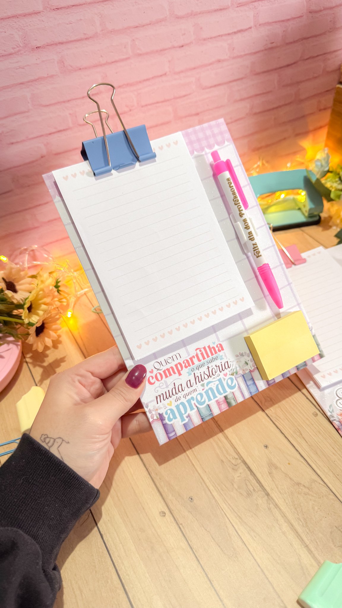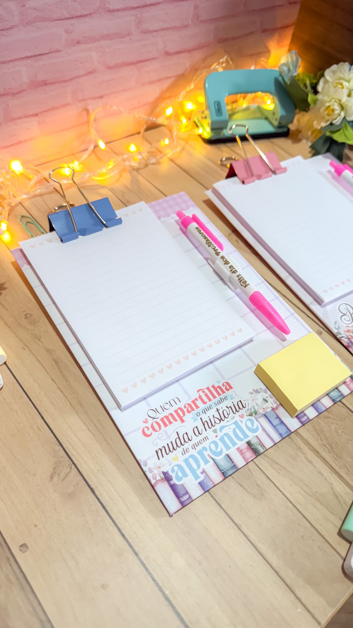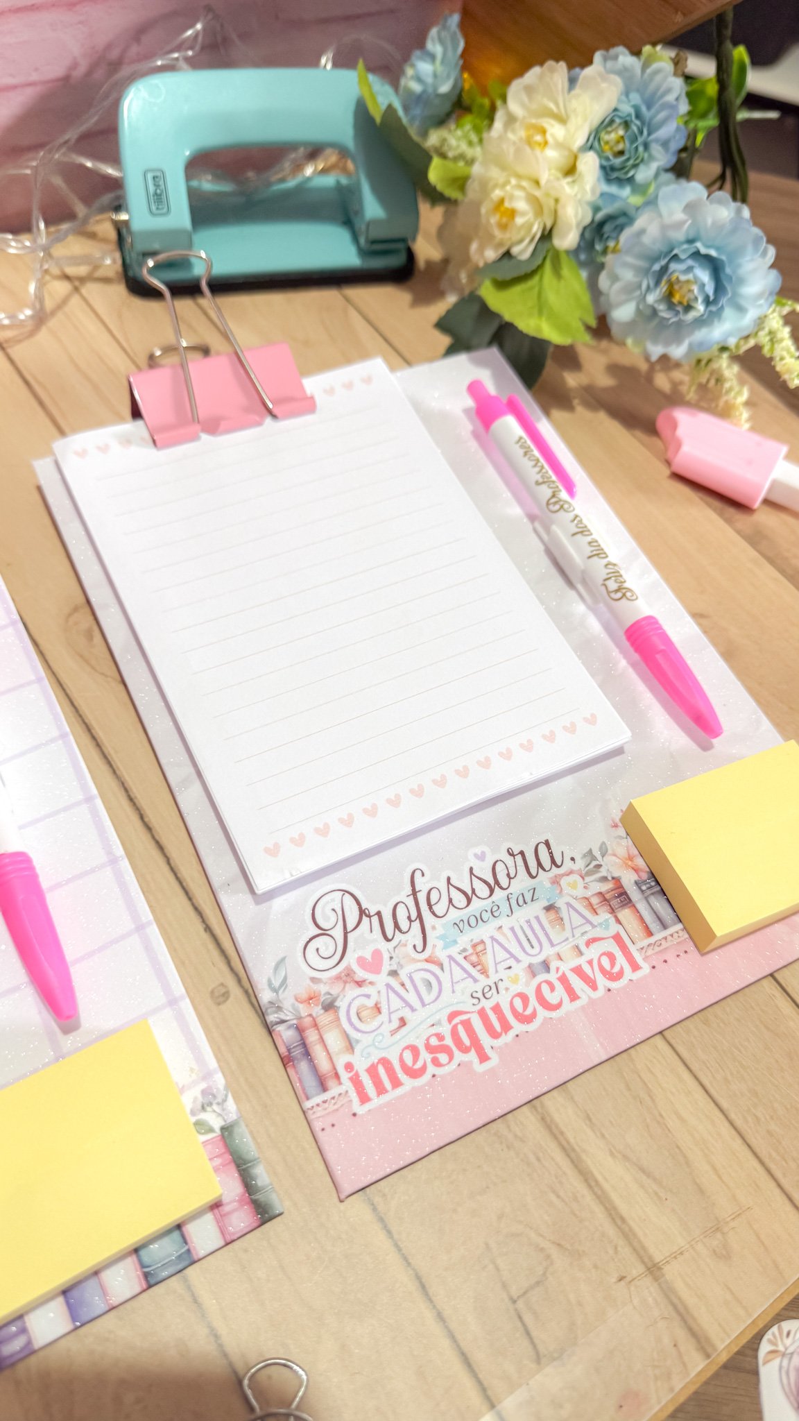 Prancheta com bloquinho e caneta