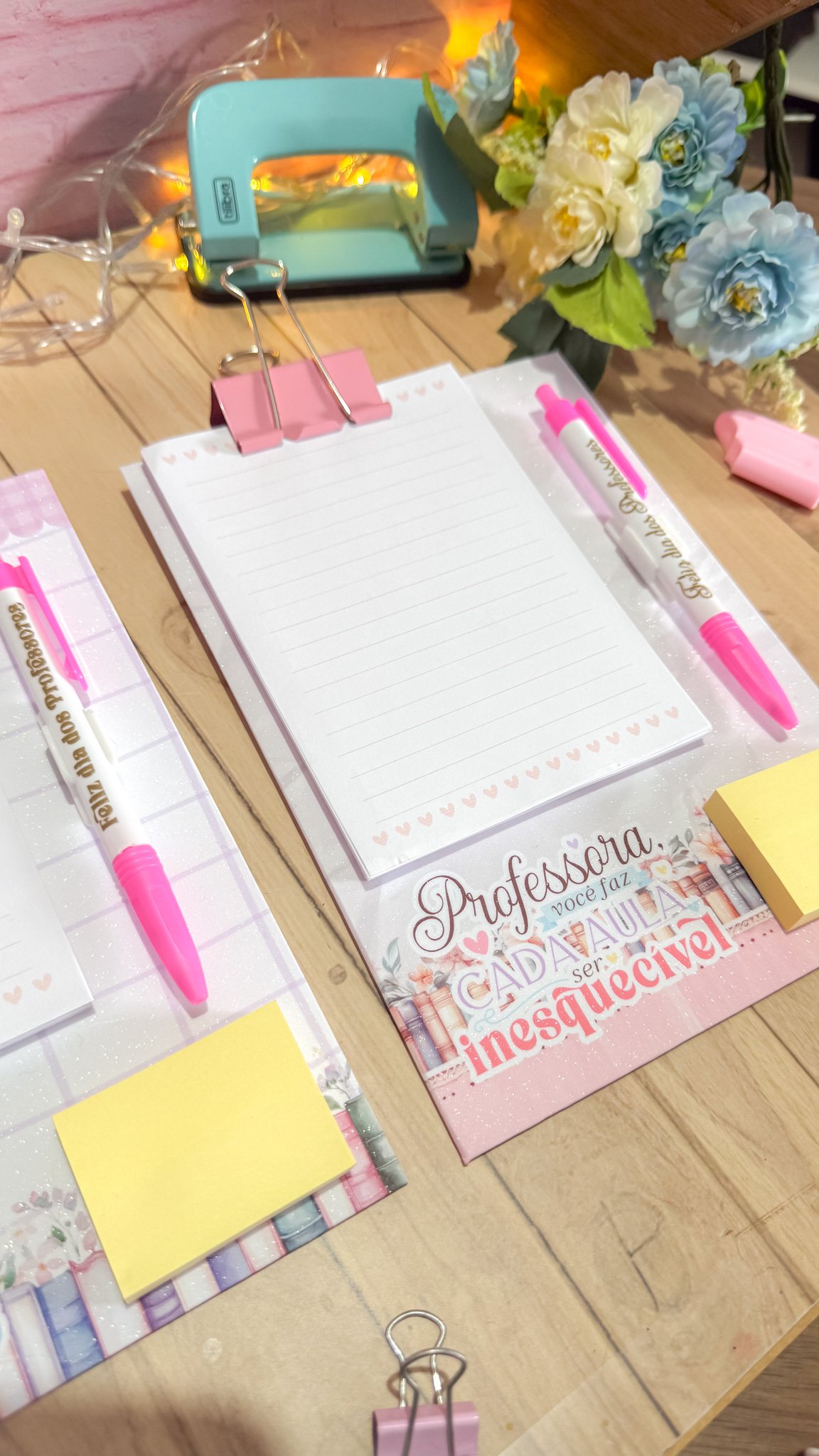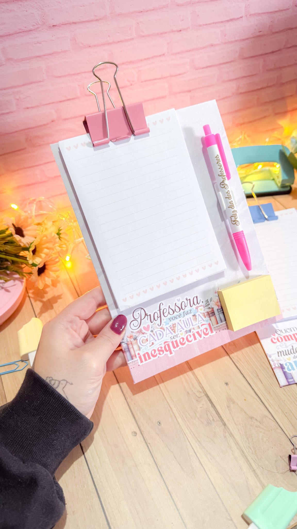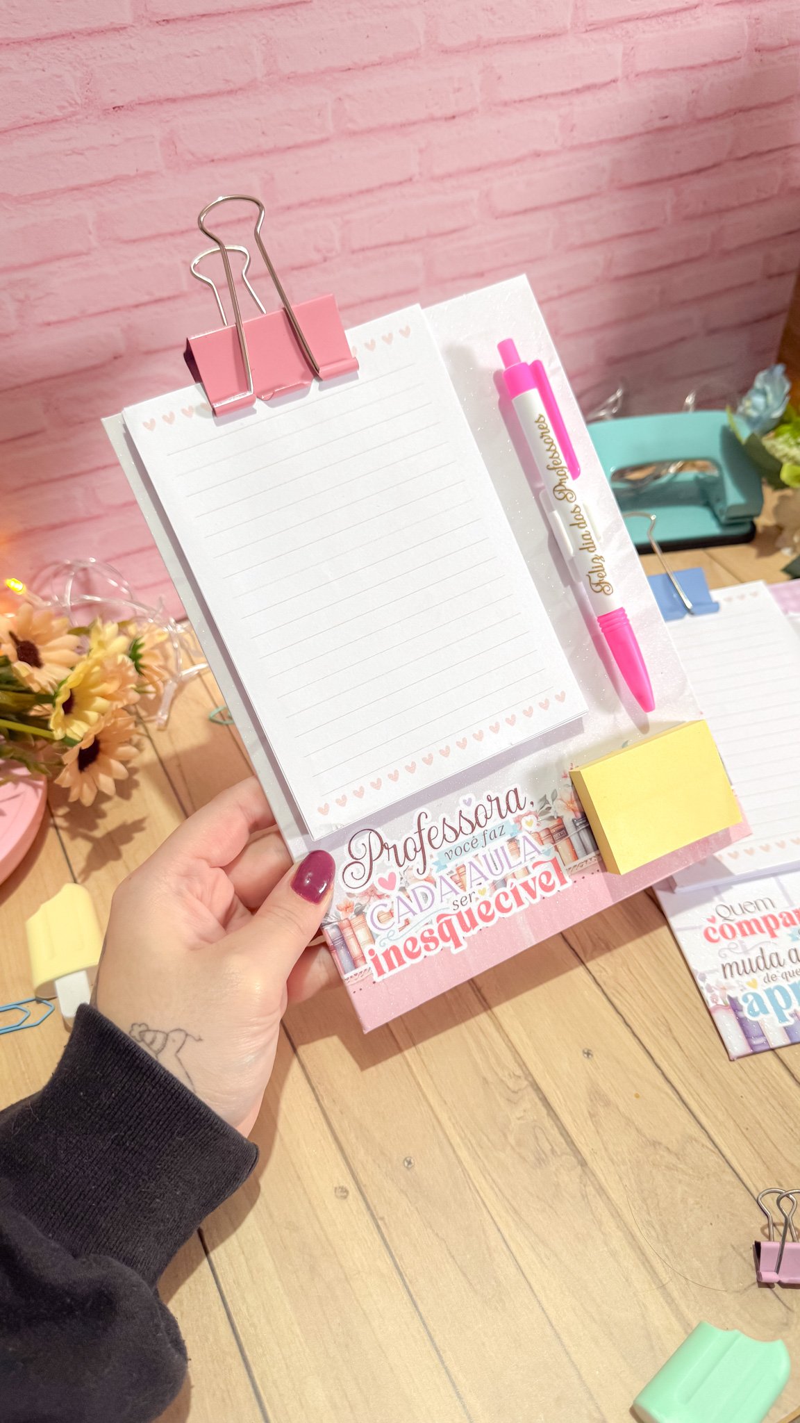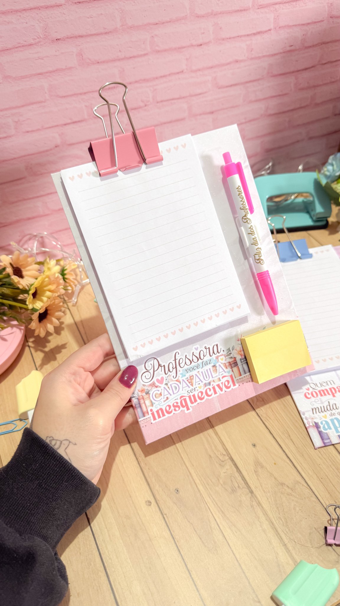 Prancheta com bloquinho e caneta