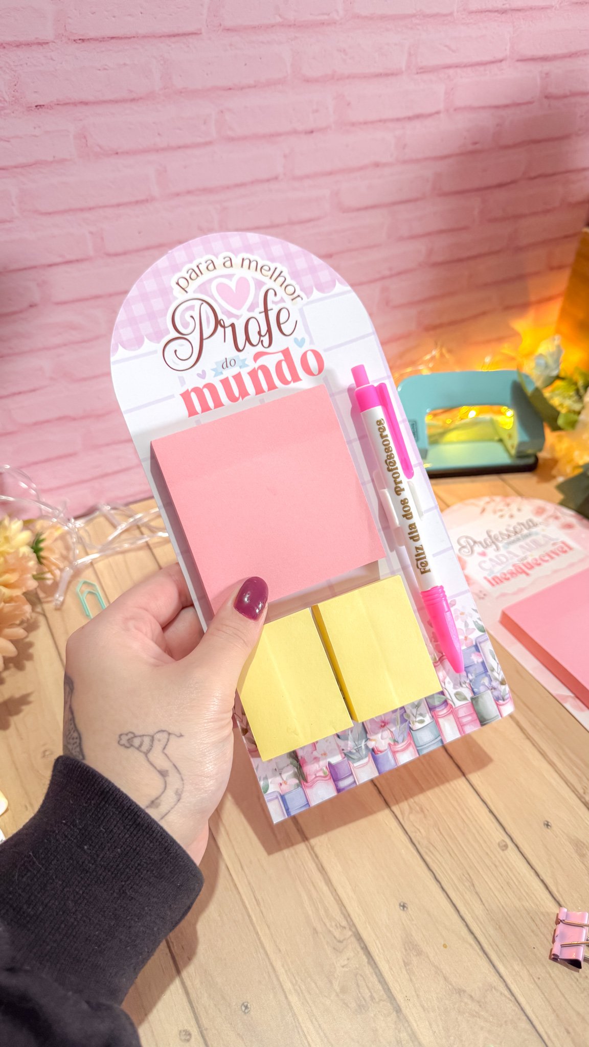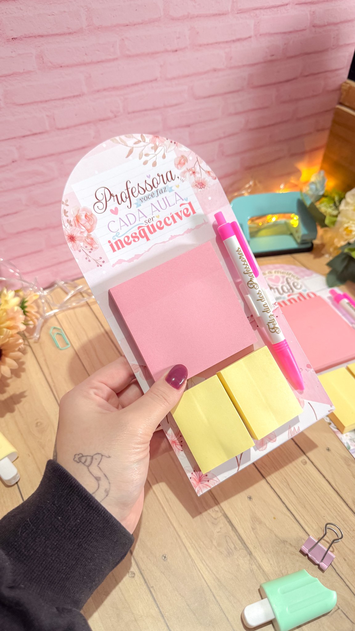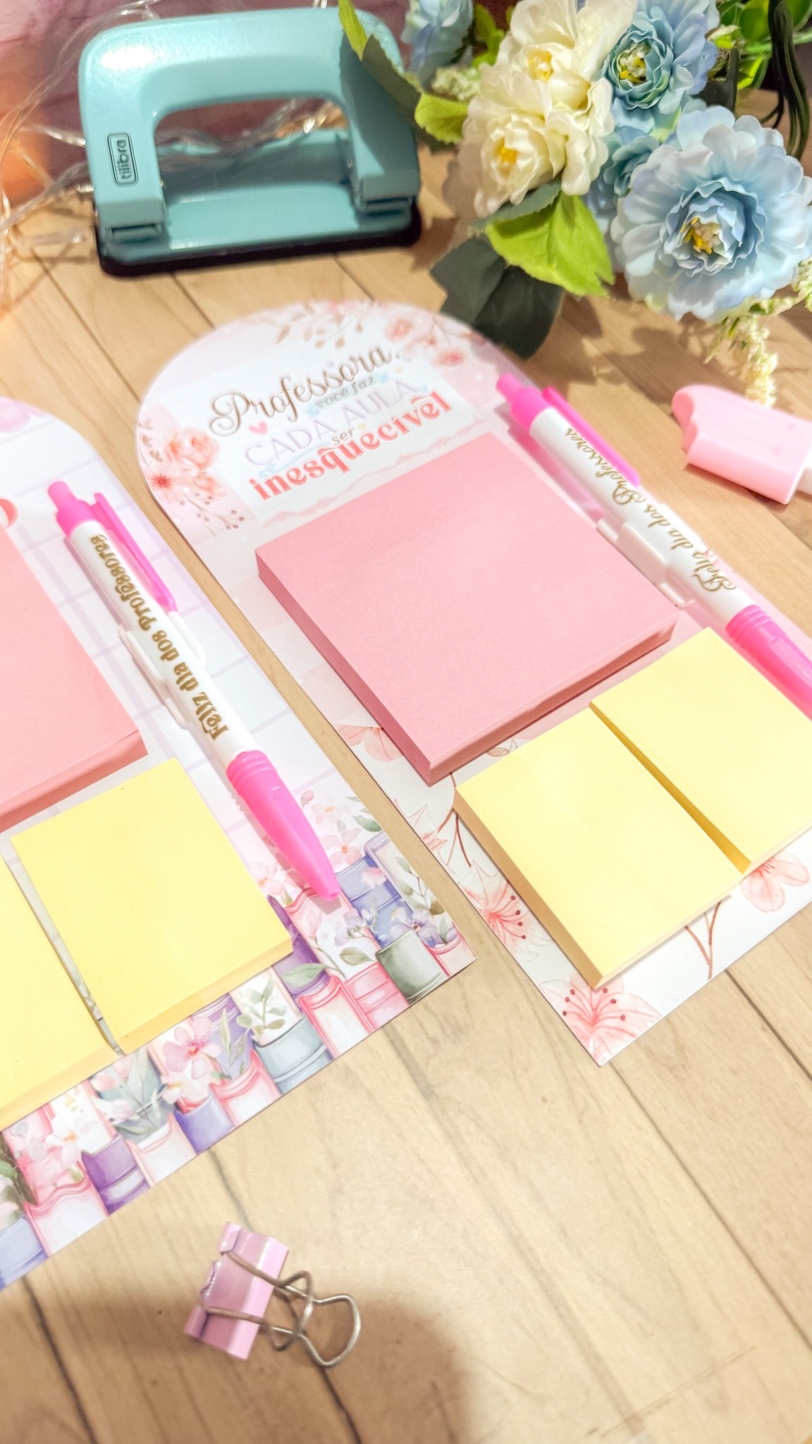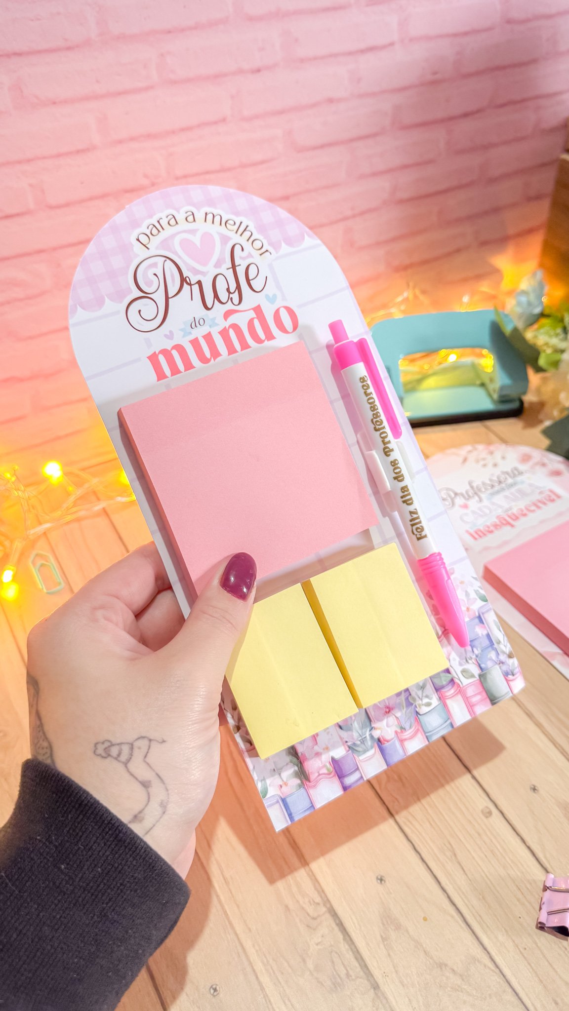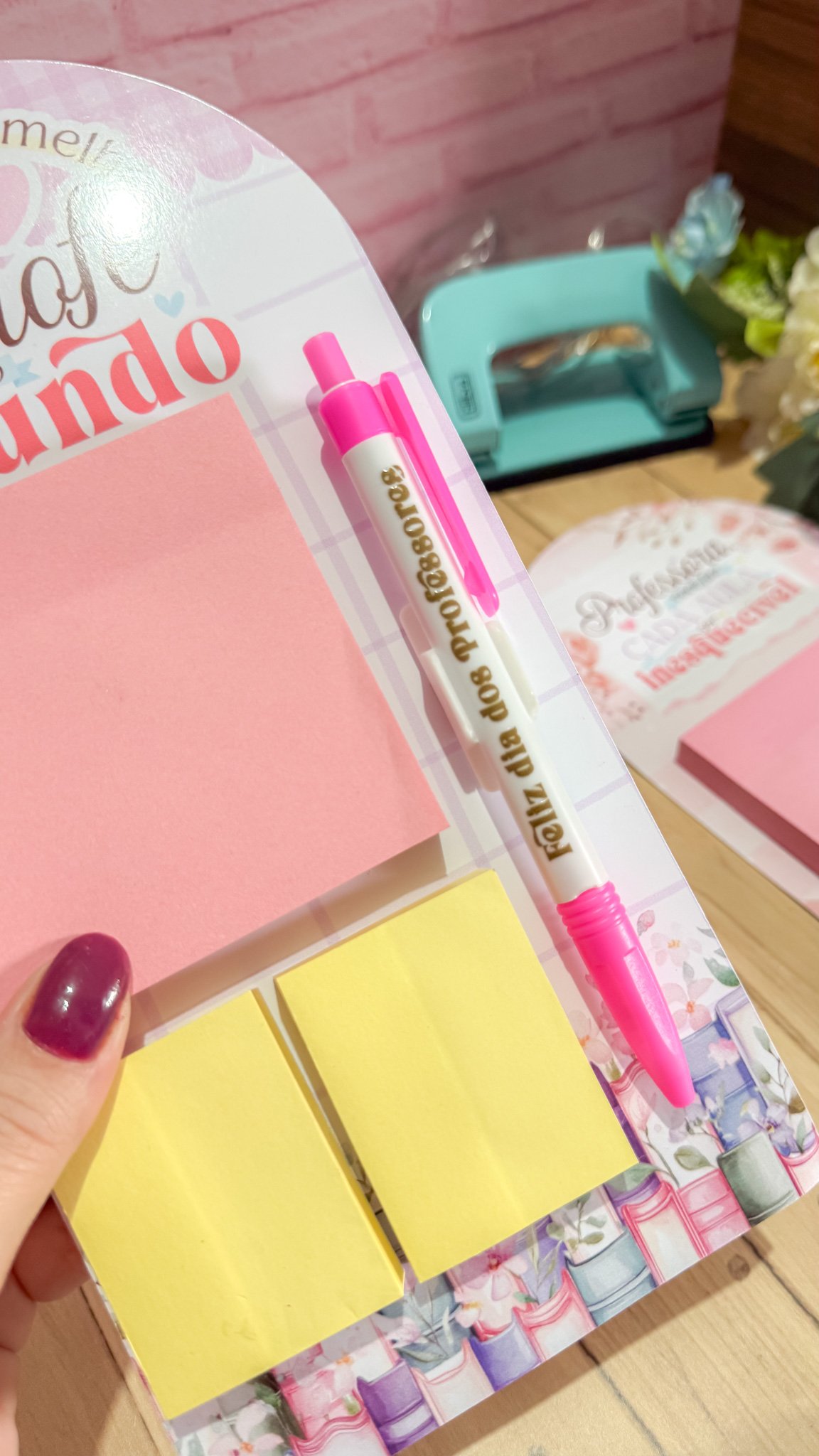 Prancheta com bloquinho e caneta