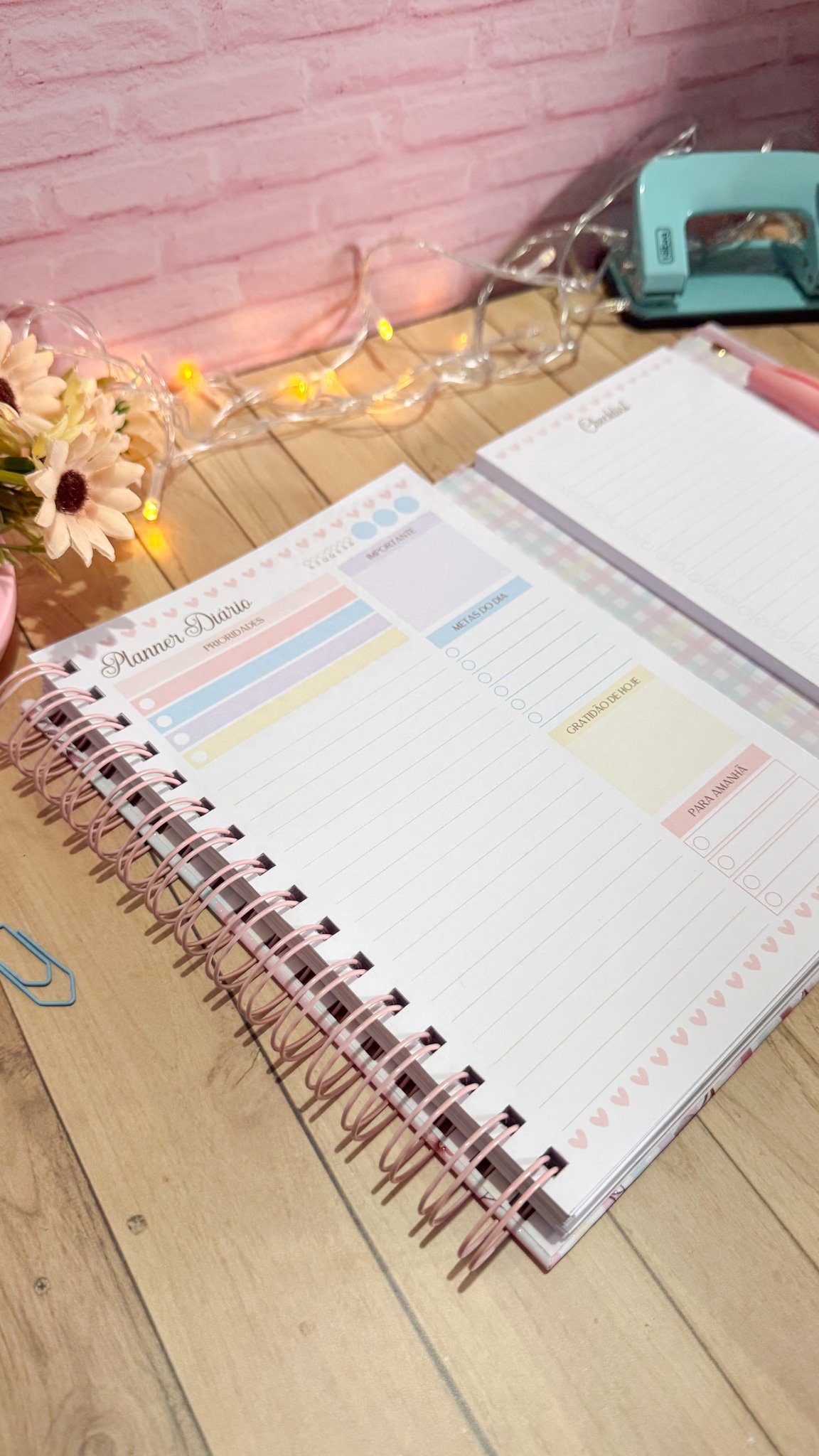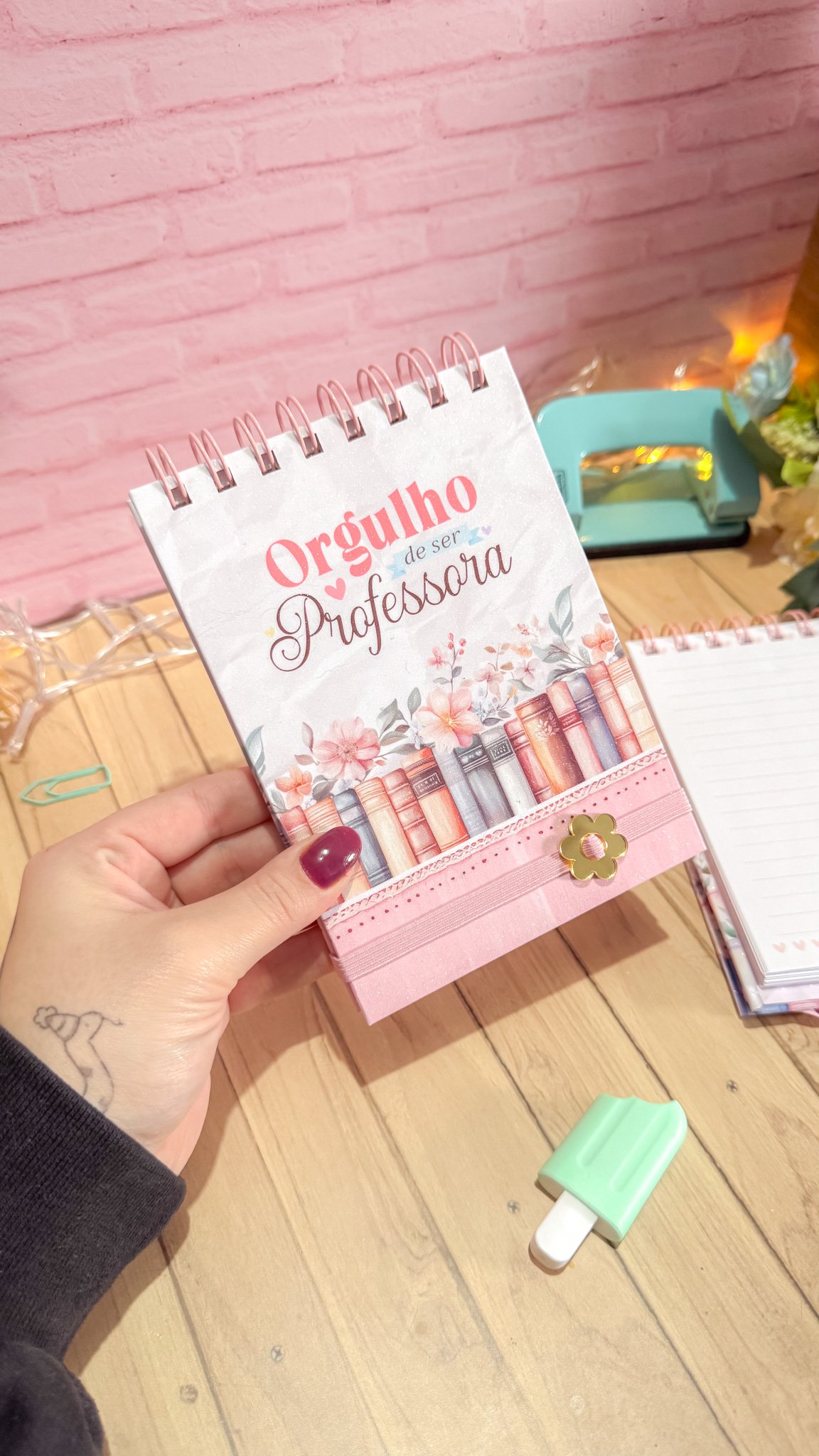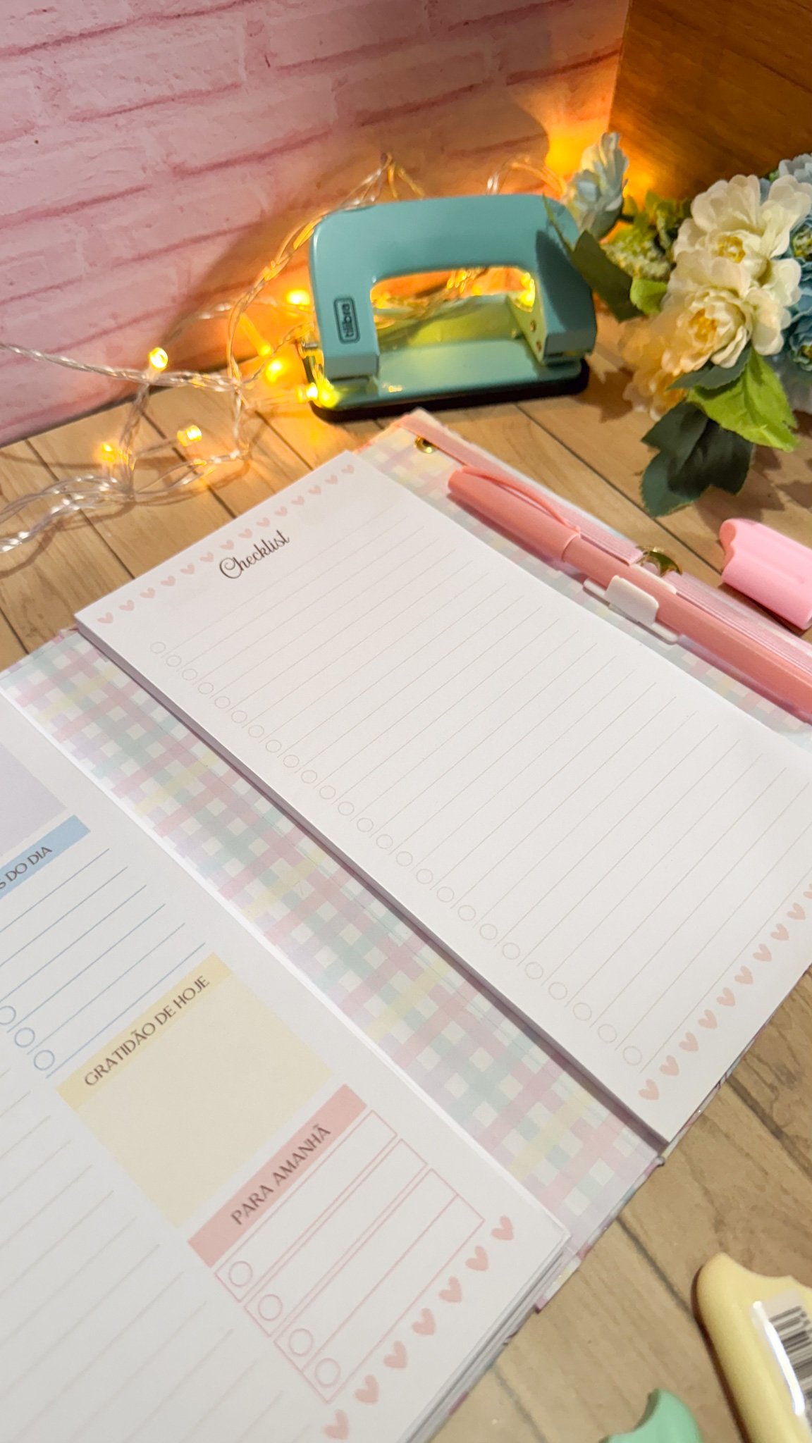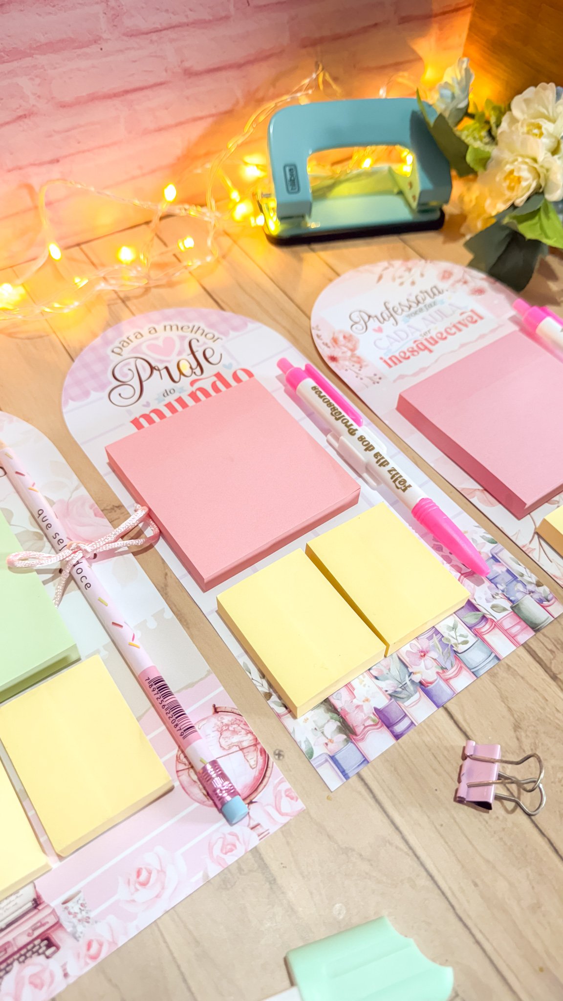 Prancheta com bloquinho e caneta