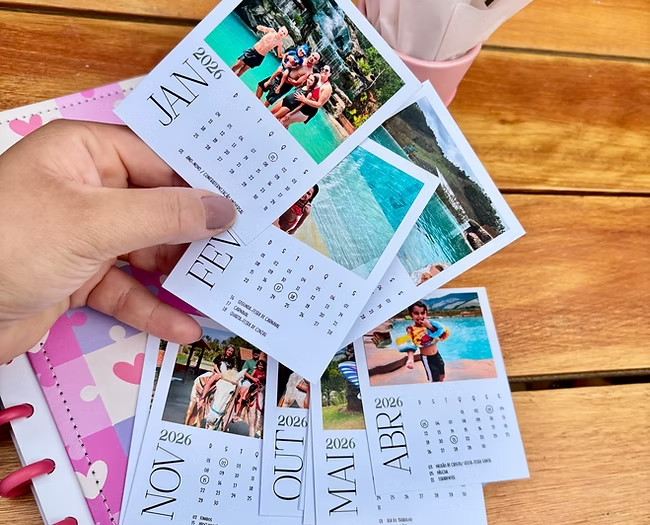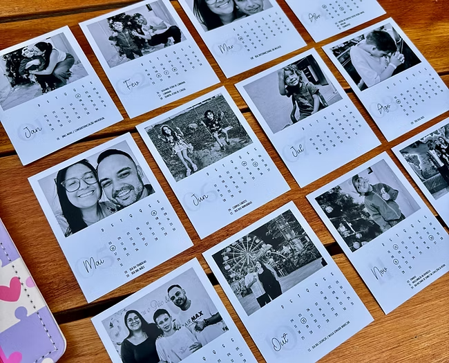 Tamanho da arte de cada mês (A x L): 5 x 5 cm.