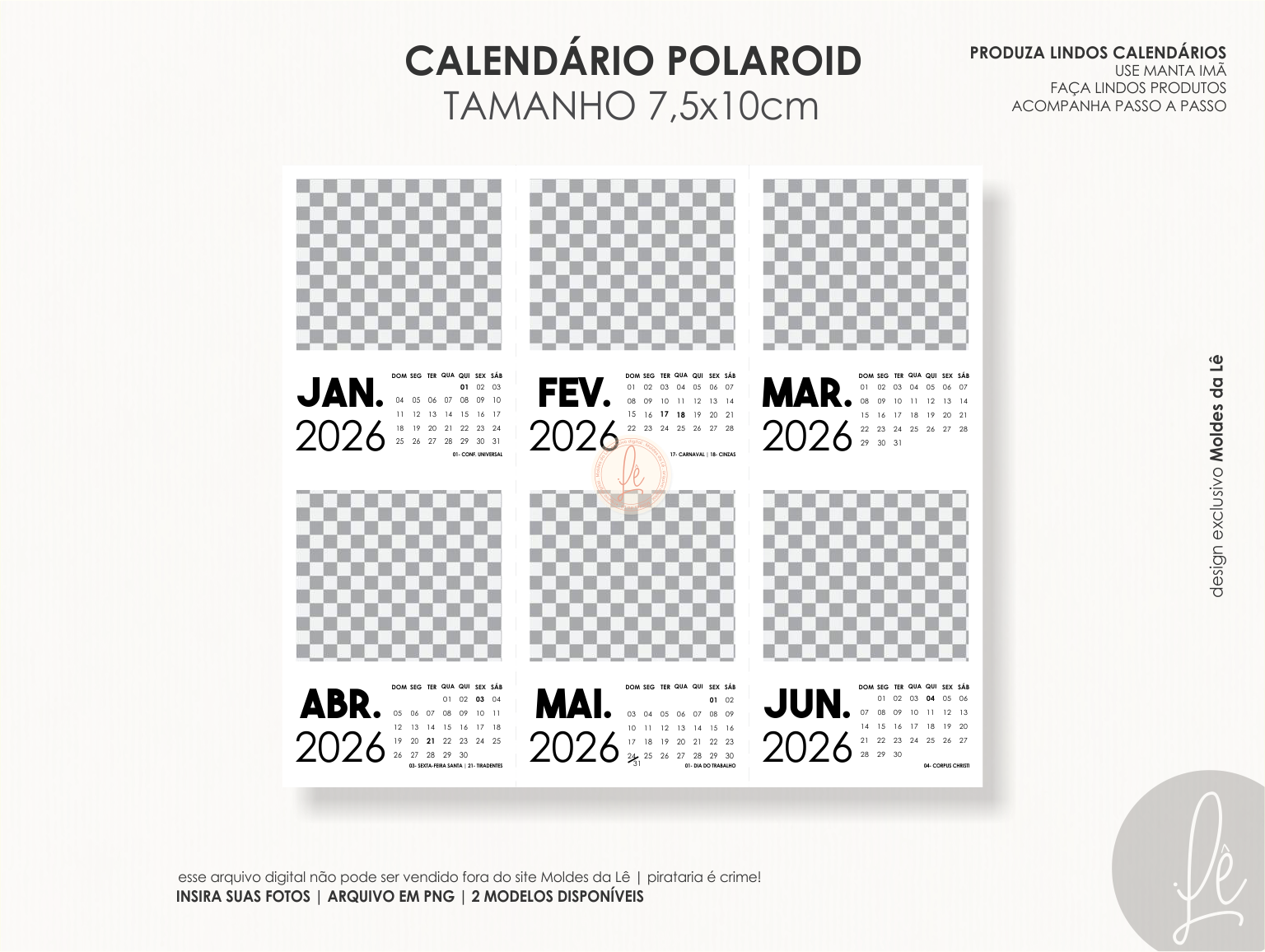 Seja o primeiro a avaliar “Calendário Polaroid 2026 (Moldes da Lê)”