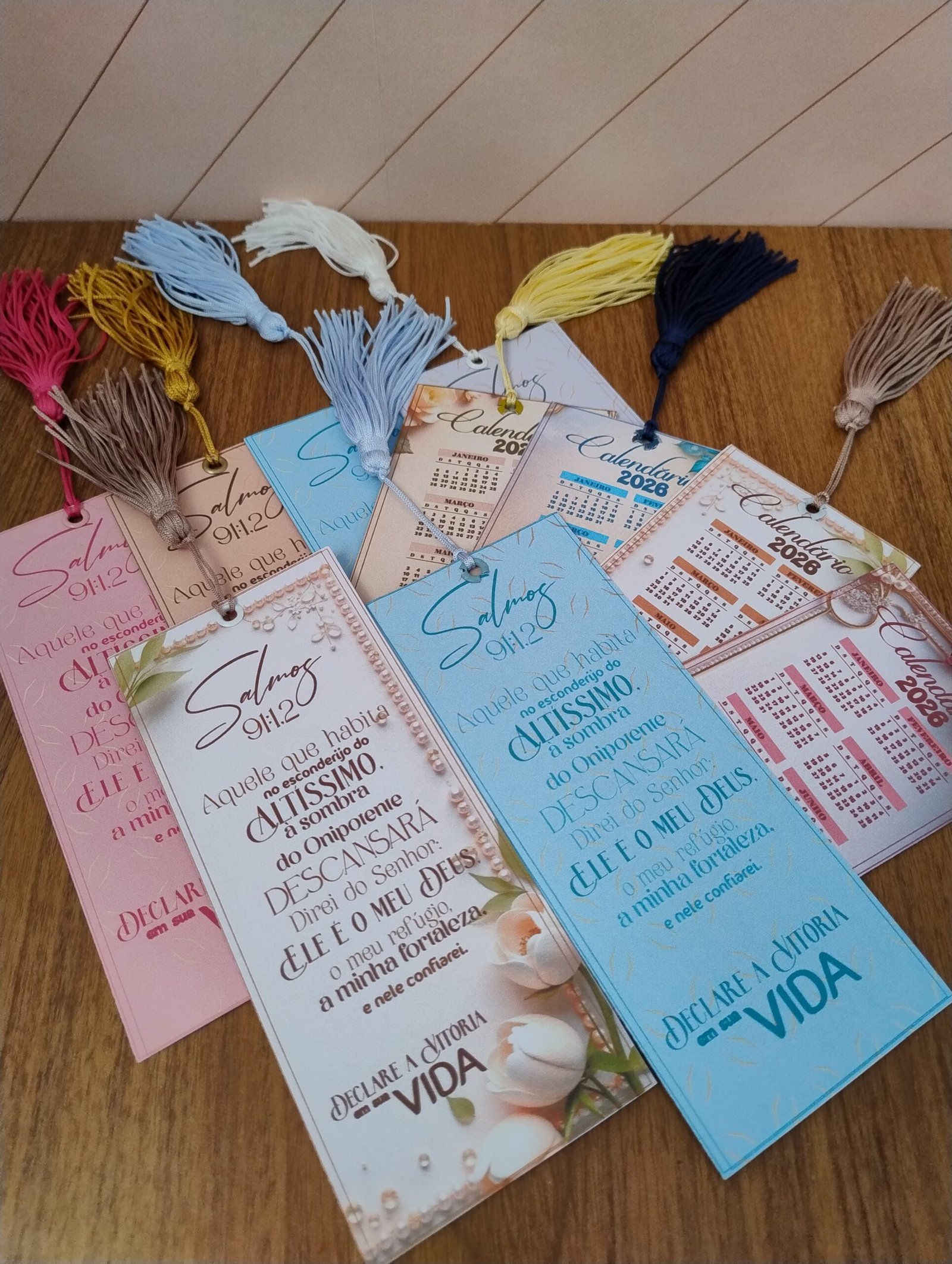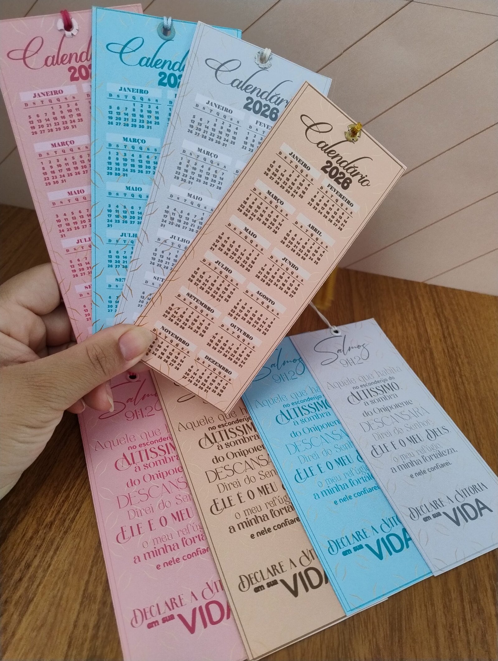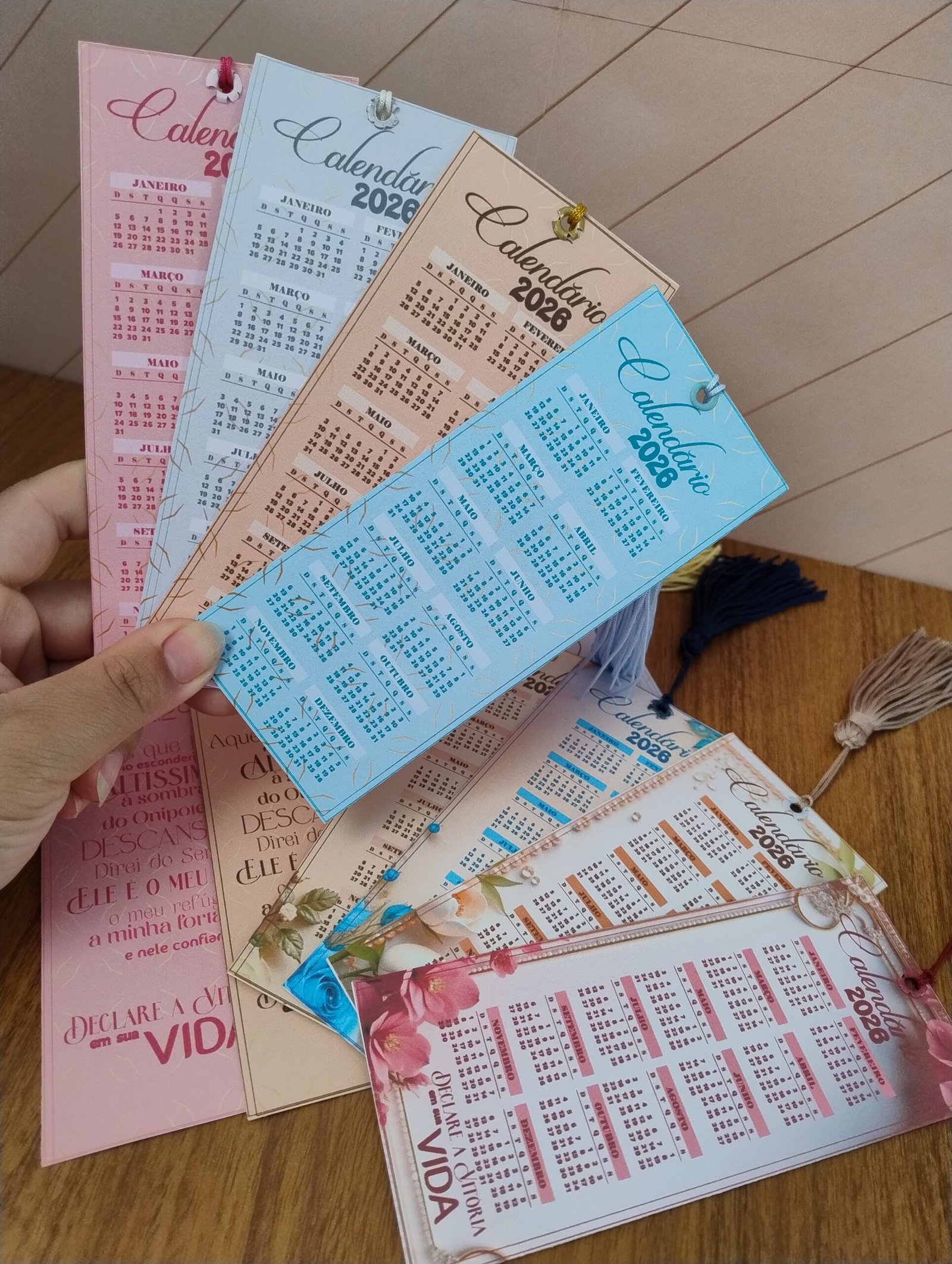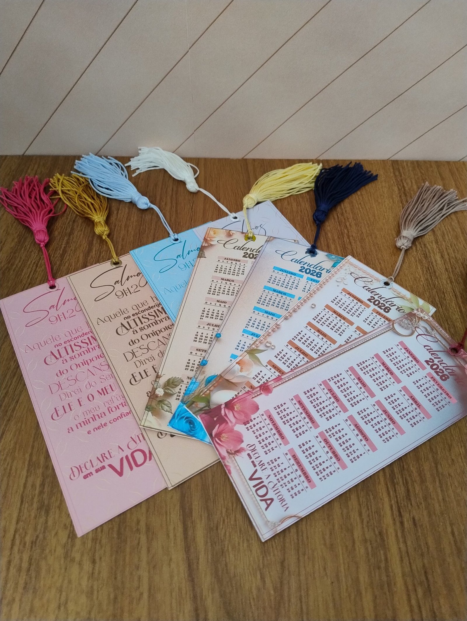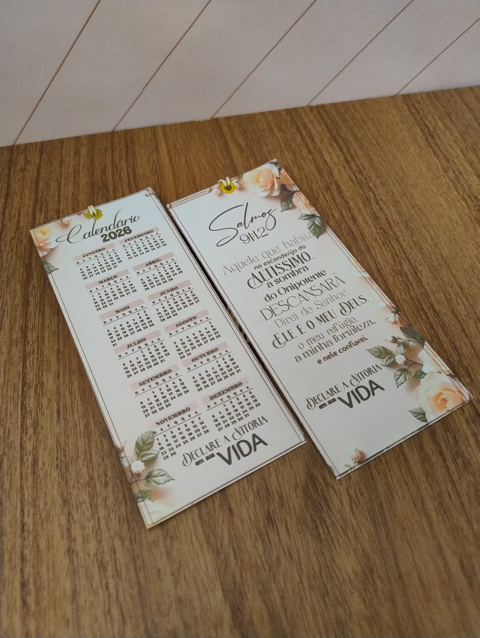 3 modelos prontos com calendário 2026 fixo (2 de parede + 1 de mesa)