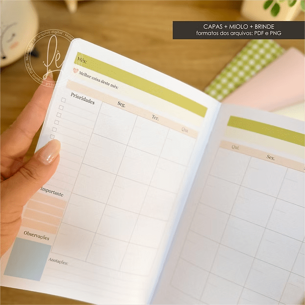 Miolo Planejador mensal permanente (14 páginas, miolo completo)