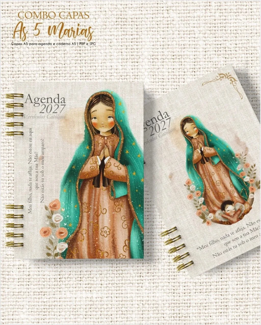 10 modelos de capas com texto AGENDA 2027 e frase A5 decorados com as 5 Marias em PDF e JPG