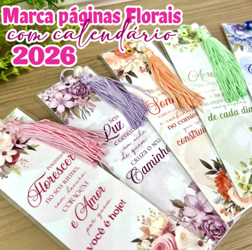 Marca páginas florais com calendário 2026 no verso PNG e PDF
