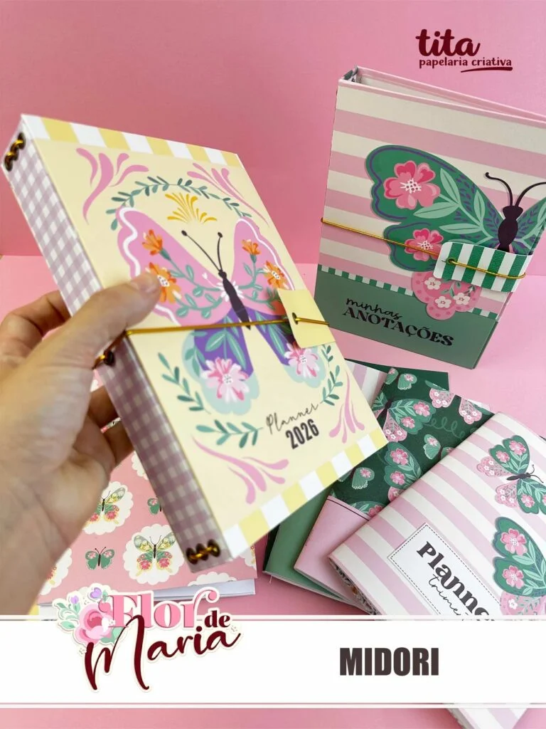 Midori – 11 capas externas + 23 livretos + miolo básicos + miolo de planner trimestral (permanente) .