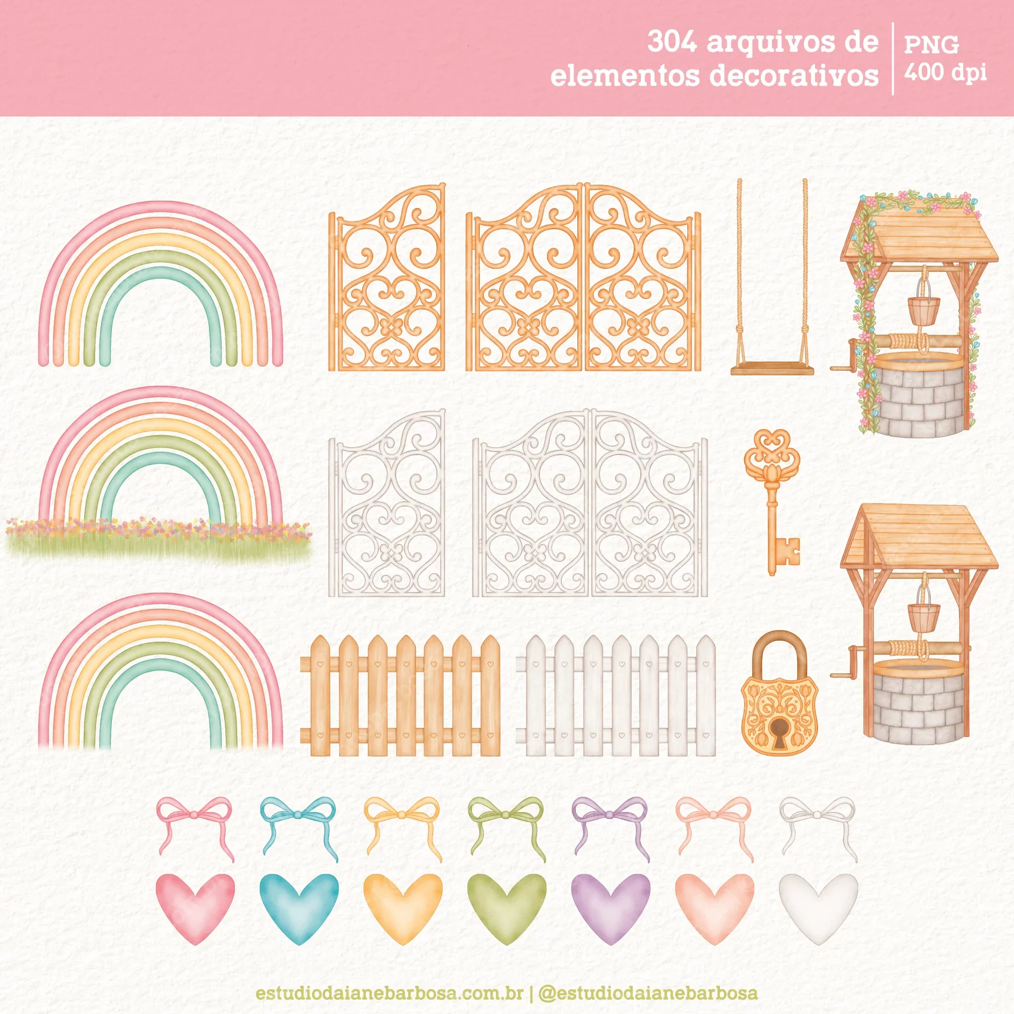 – 74 elementos decorativos diversos, incluindo lanternas, nuvens, arco-íris, árvores, cercas, portões, galhos e muitos outros;
