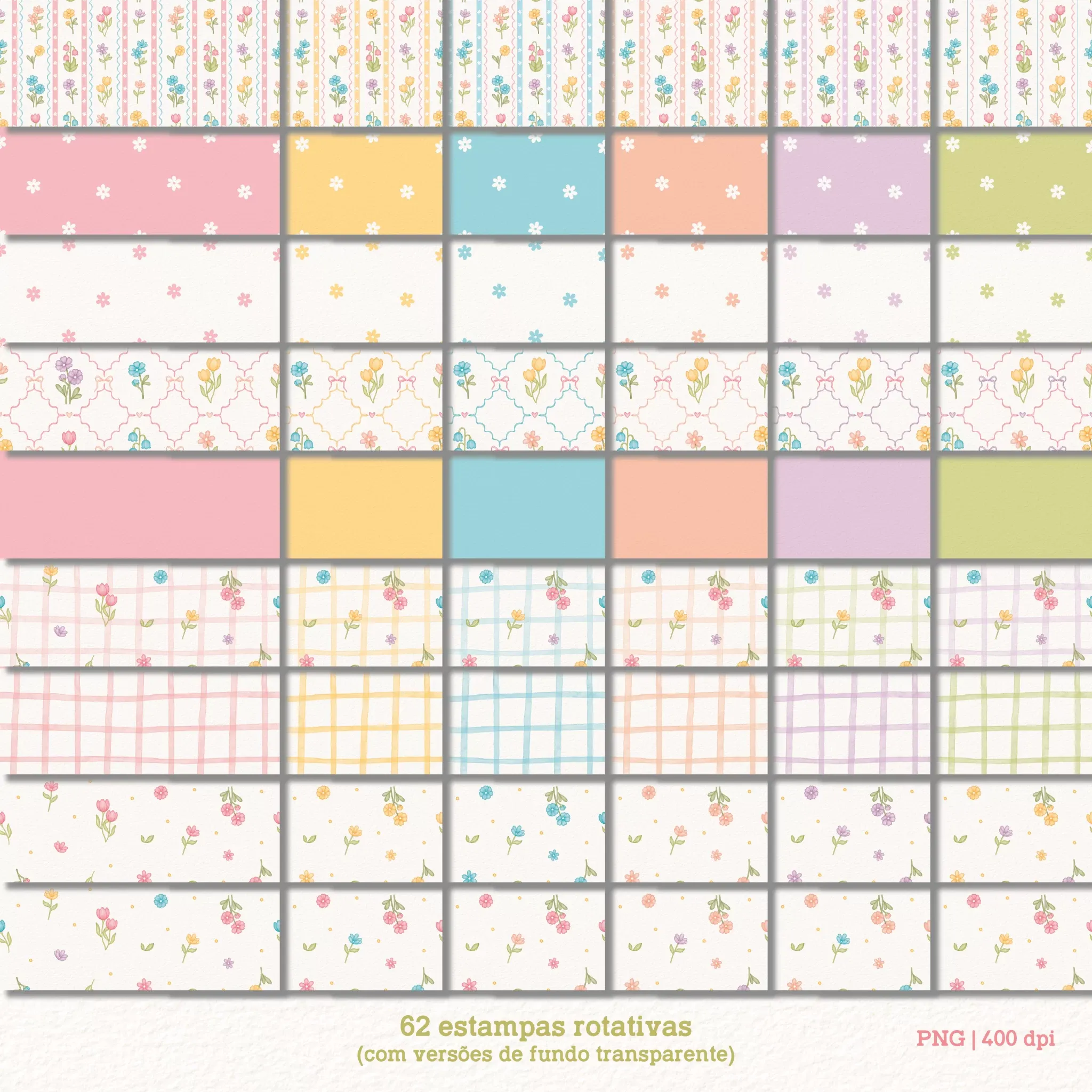 – 62 papéis digitais rotativos (incluindo as estampas com fundo transparente);